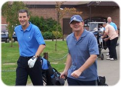 Andy G in trouble as his digs his way out the dry water hazard just off the tee. |