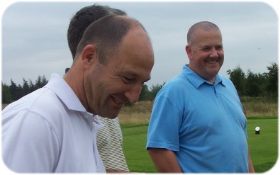 problem to get out finishing only a few feet from the pin. All smiles from Mark P before the golf, but not the same after with a round made up of to many blobs 5 in all for his 29pts. |