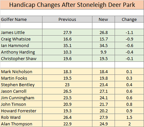 See your division page to review your allocated new "Handicap Index" and/or review the playing list for the day here. |